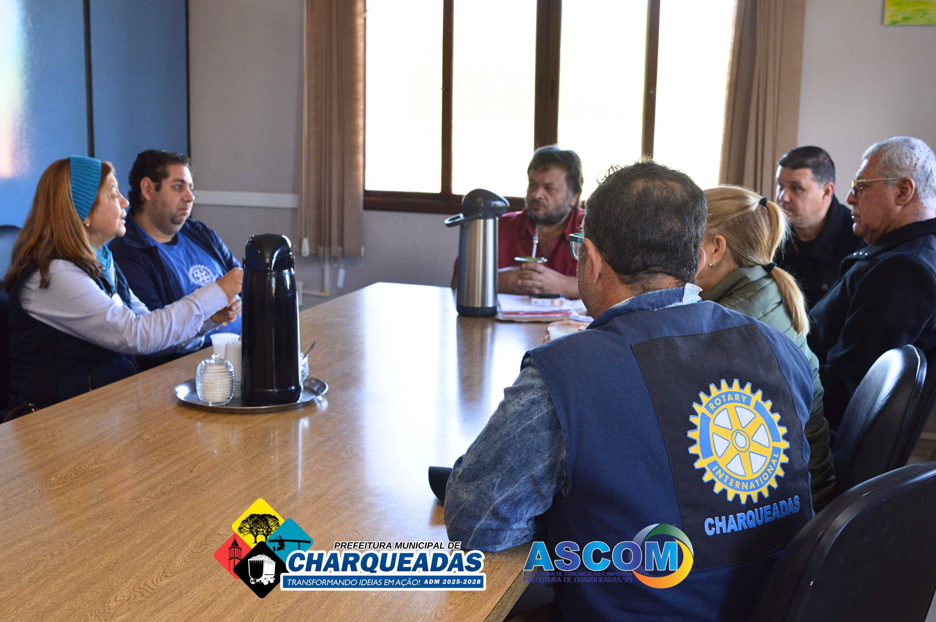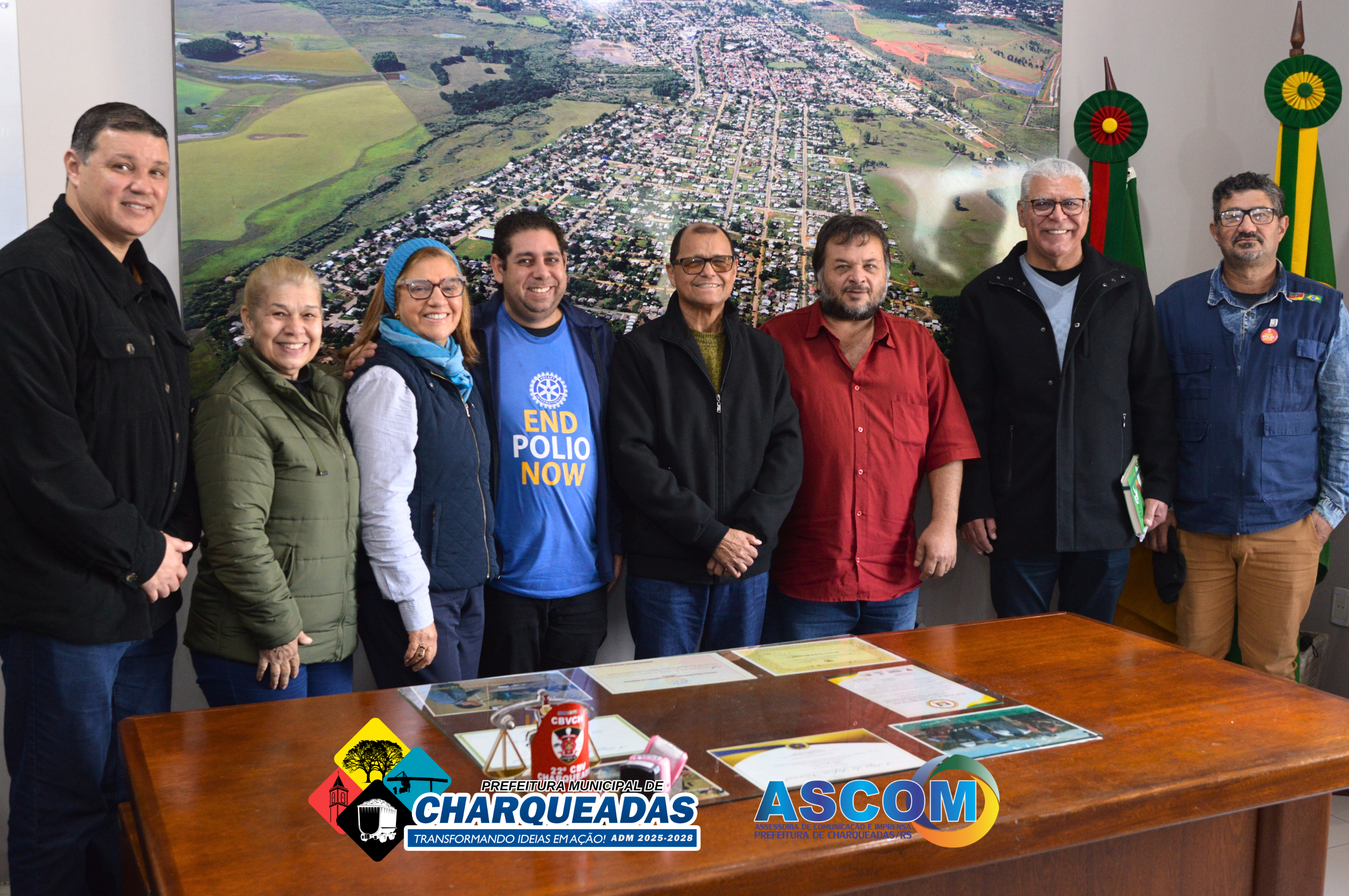 Na manhã desta quarta-feira (27/08), o prefeito Ricardo Vargas e o vice-prefeito André Sippel receberam, em seu gabinete, representantes do Rotary Club Charqueadas, acompanhados da Governadora Assistente da região, Sra. Maria Conceição Brietzk. Na ocasião foi firmado o compromisso de unir esforços em projetos sociais voltados para as áreas da Educação, Saúde e Meio Ambiente.