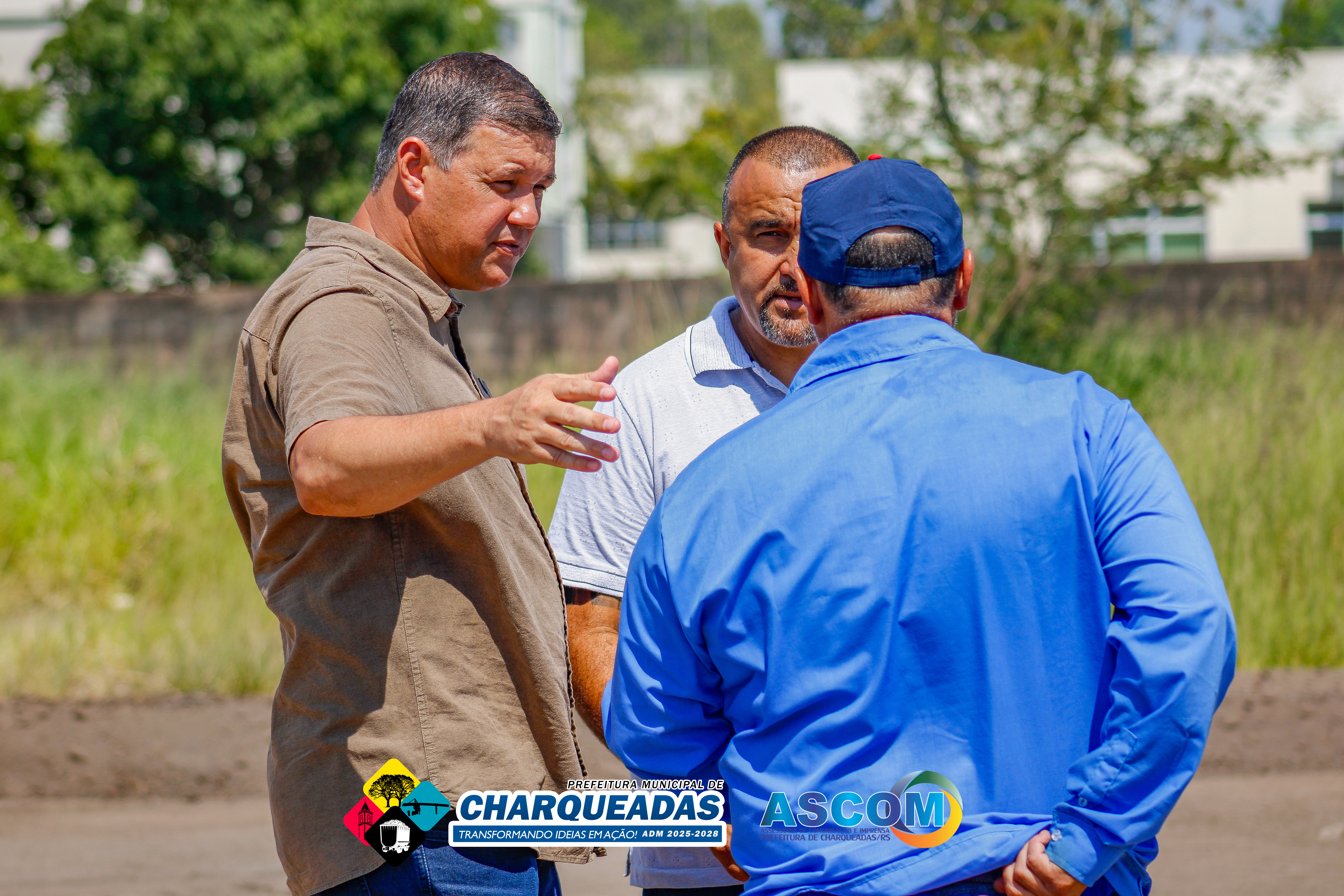 Na manhã desta quarta-feira (28/01), o prefeito Ricardo Vargas, o vice-prefeito André Sippel e o secretário de Obras Eveton Dorneles estiveram acompanhando o início da construção da pista atlética no Parque Adhemar de Faria (Parcão). A obra é viabilizada por meio de convênio com a Secretaria Estadual do Esporte e Lazer, que destinou R$ 500.000,00 para o projeto, enquanto o município investe R$ 486.380,96, totalizando R$ 986.380,96, por meio do Convênio nº 135/2024, do programa Avançar Mais Esporte – Infra.