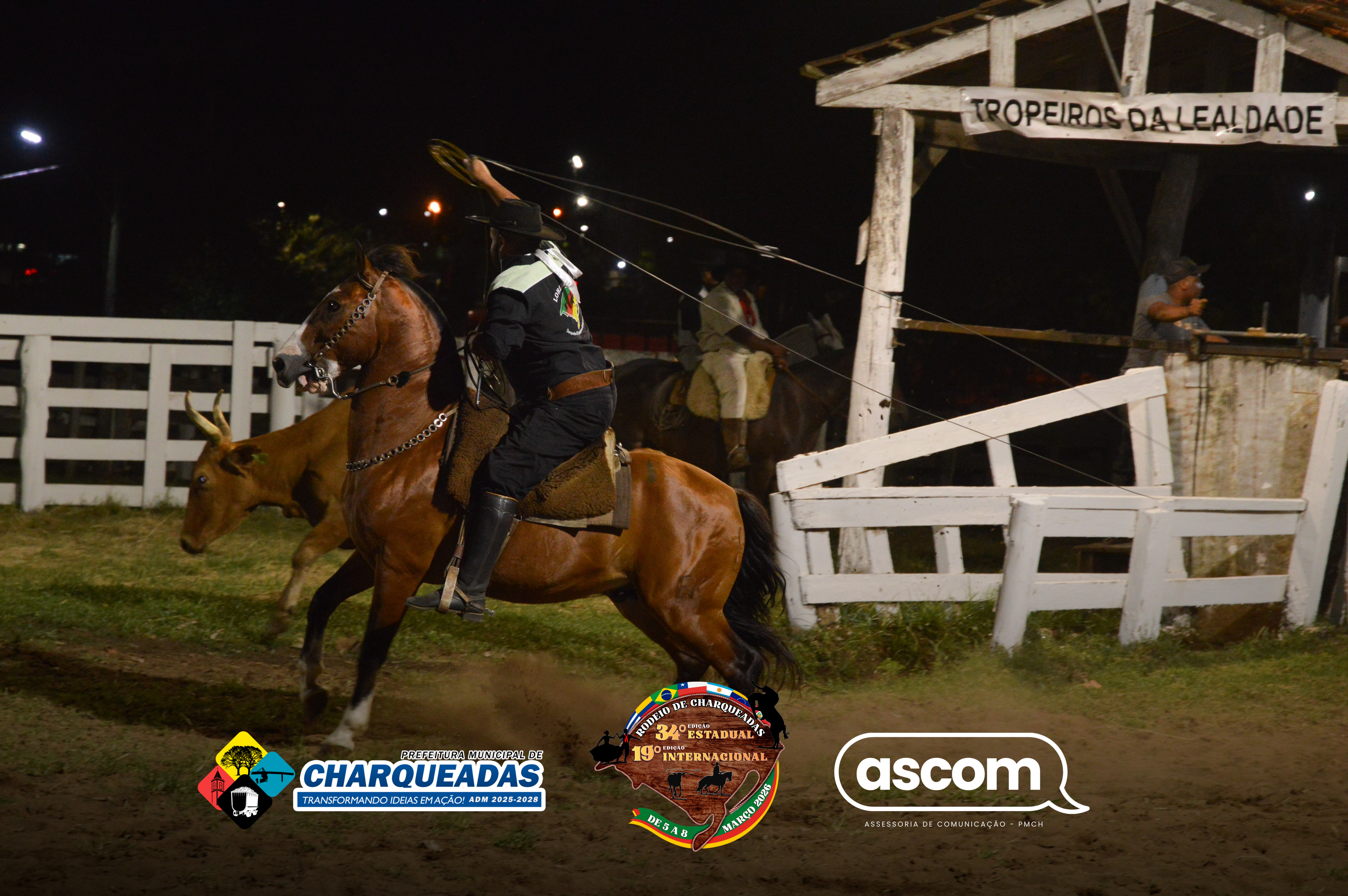 Na noite desta quinta-feira (05/03), tiveram início as provas campeiras do 34º Rodeio Estadual e 19º Rodeio Internacional de Charqueadas, com a realização da Taça Lebes, reunindo competidores, tradicionalistas e público visitante.