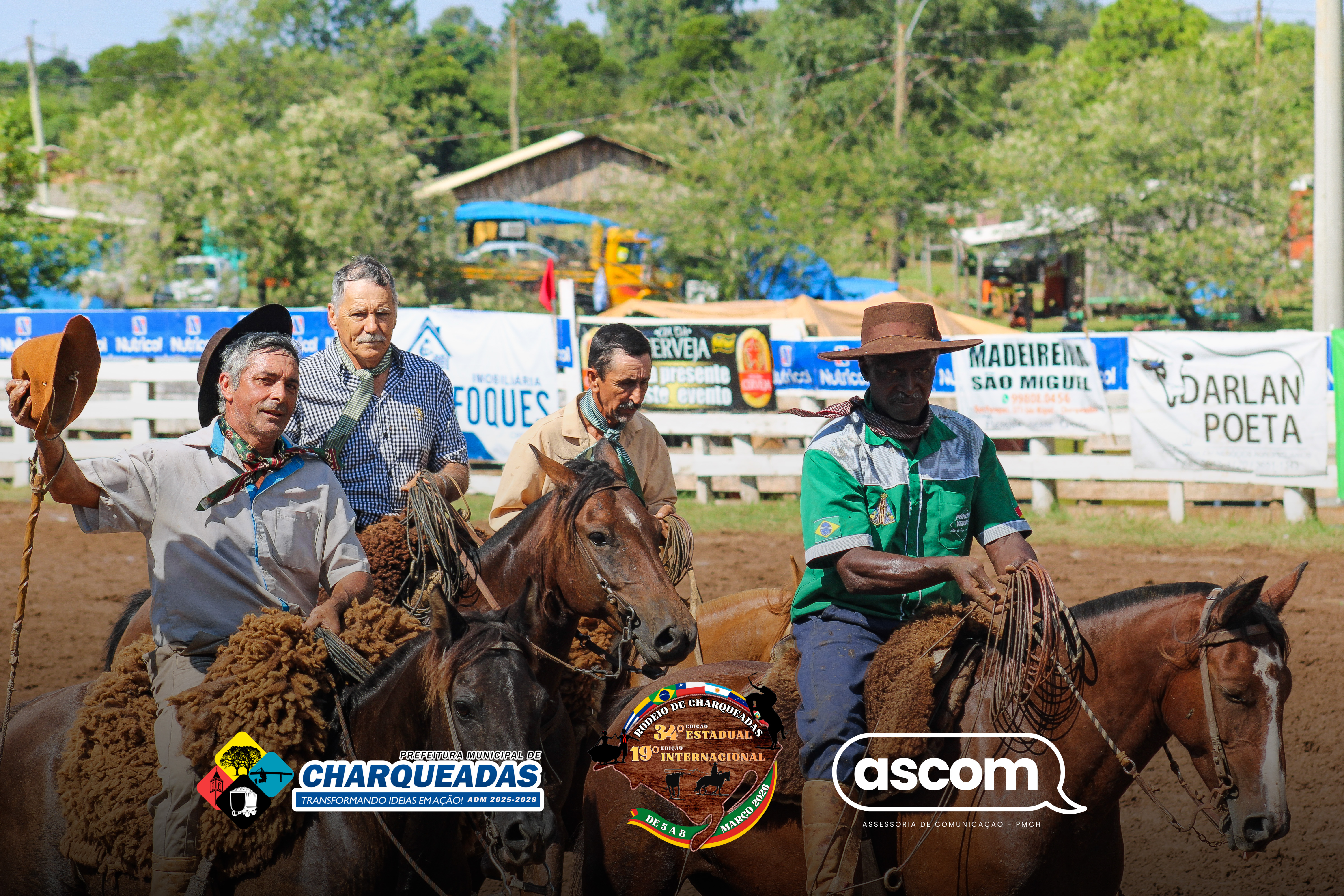 Relembrando que à noite haverão os seguintes shows: acontecerão os shows de Rony e Grupo, Graciele de Souza, Bochincho e Fandangaço, além da abertura Oficial do 34° Rodeio Estadual e 19° Rodeio Internacional de Charqueadas.