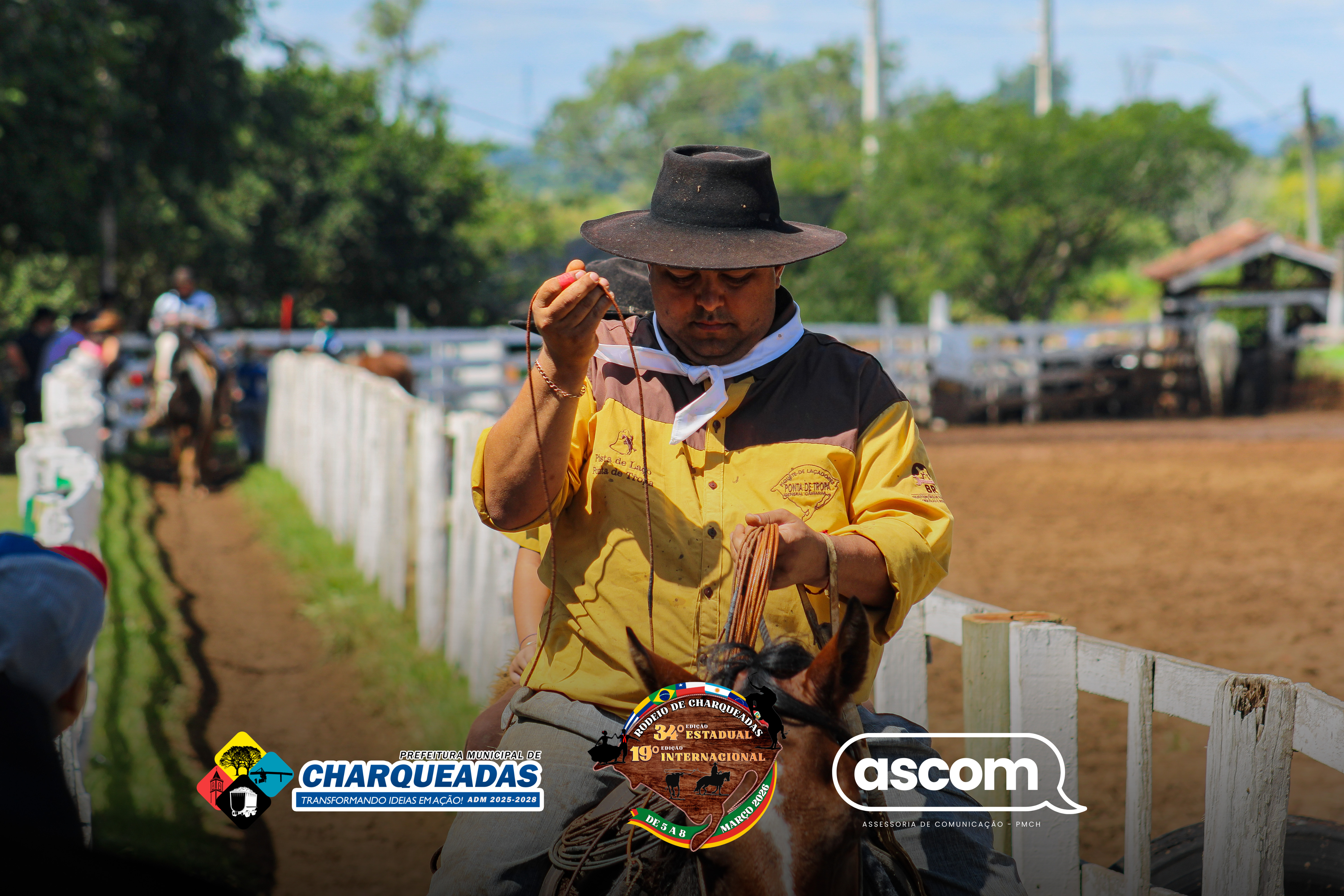 Relembrando que à noite haverão os seguintes shows: acontecerão os shows de Rony e Grupo, Graciele de Souza, Bochincho e Fandangaço, além da abertura Oficial do 34° Rodeio Estadual e 19° Rodeio Internacional de Charqueadas.