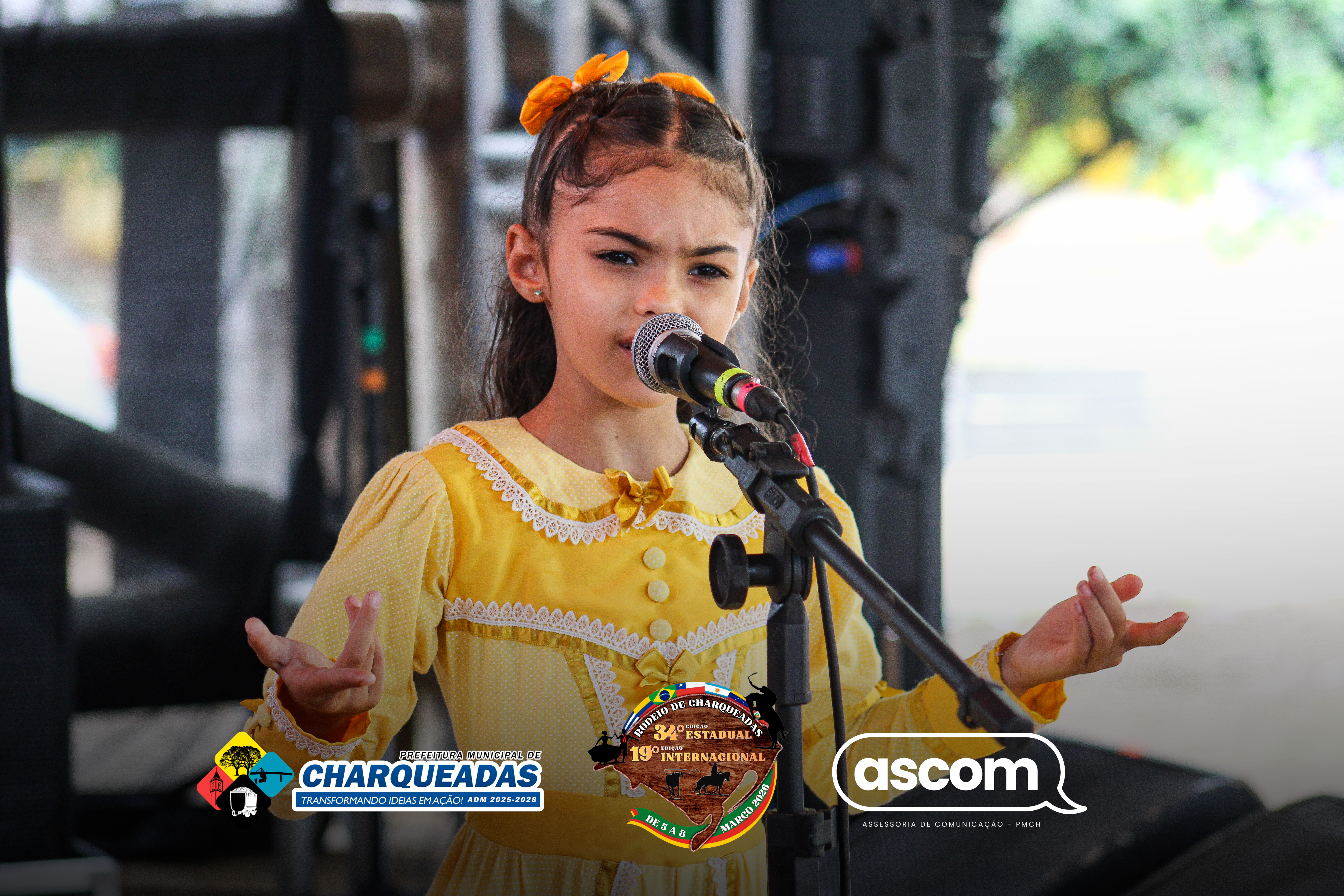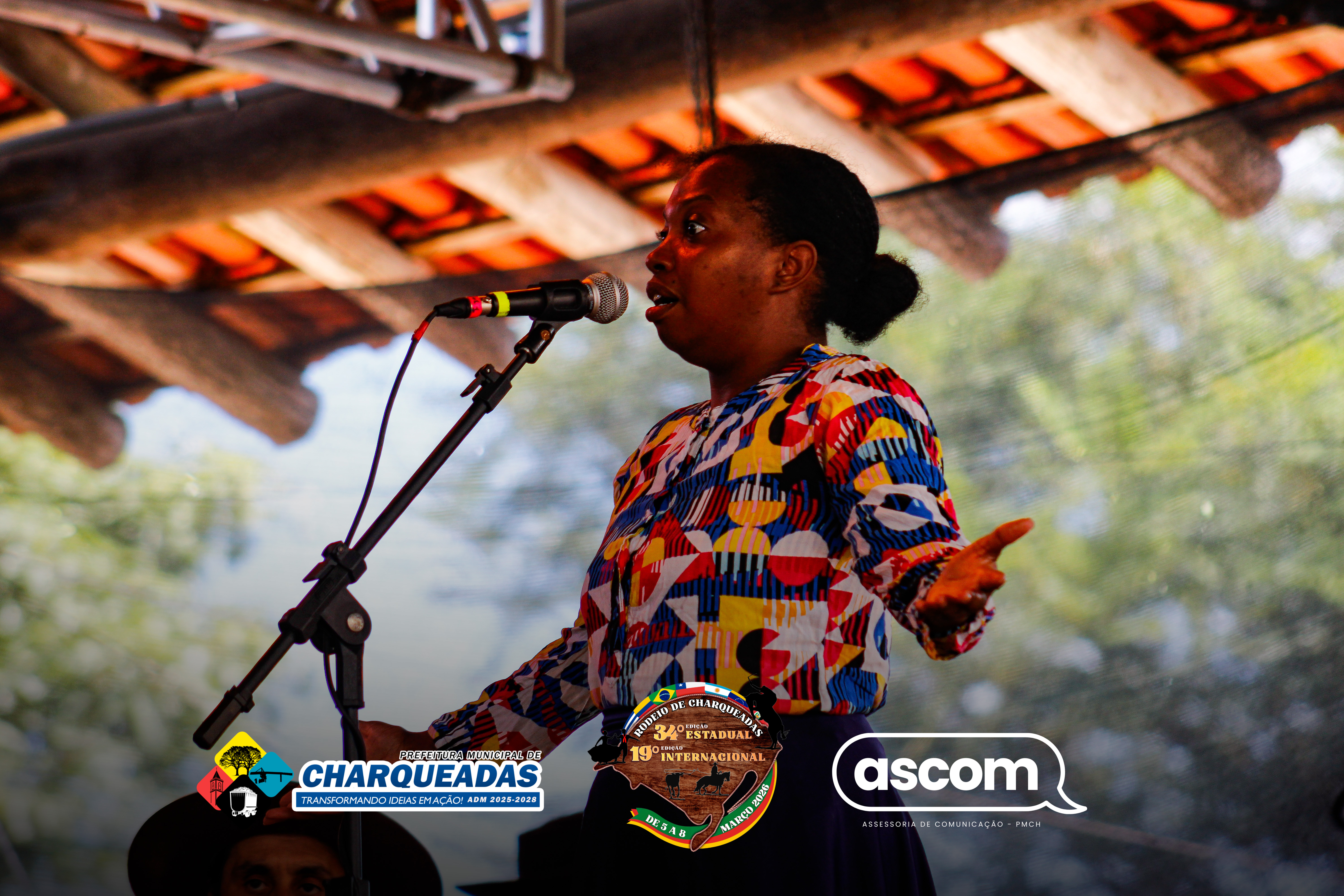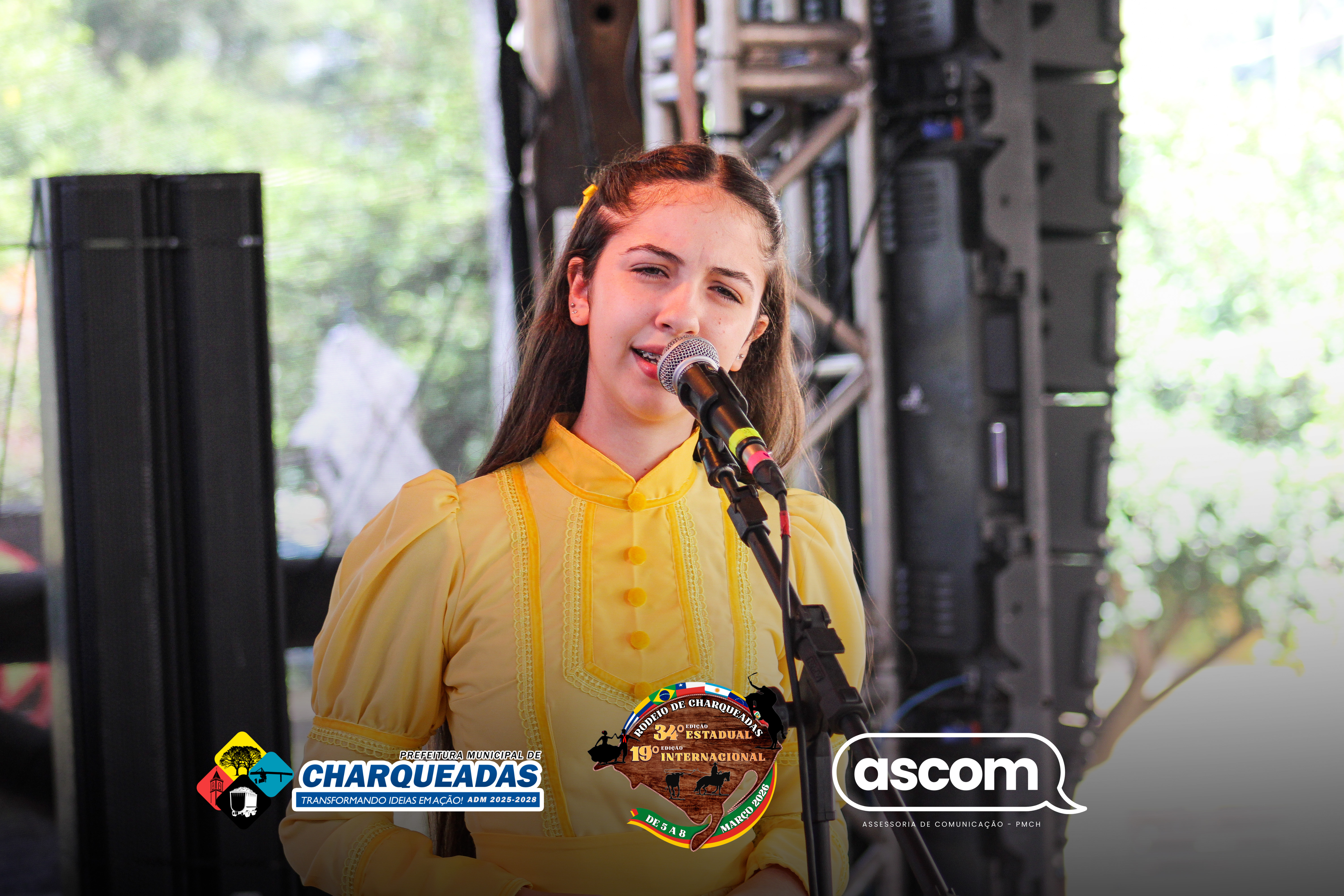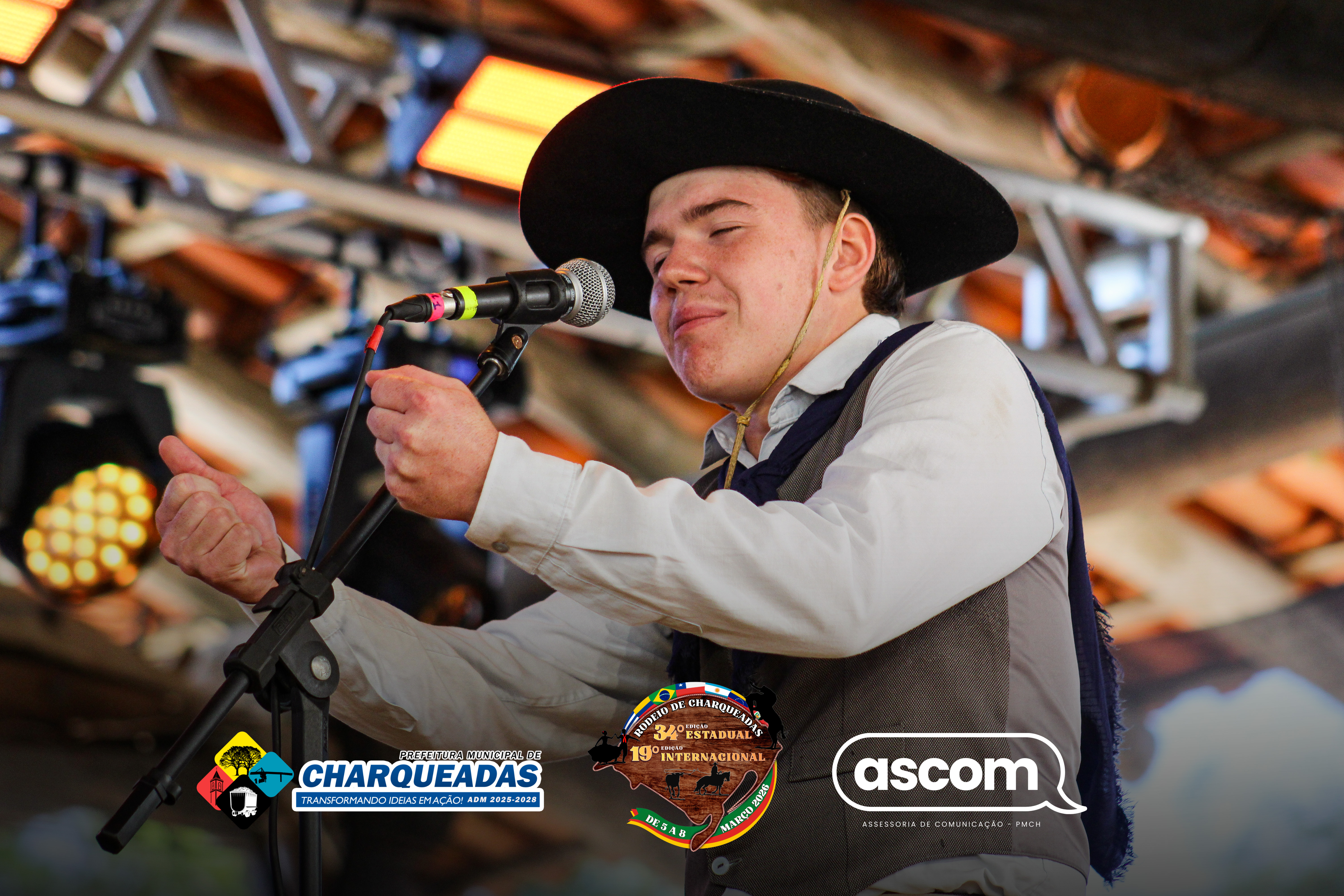 Na tarde deste domingo (08/03), o Parque Municipal de Eventos Aldo Moreira dos Santos foi tomado pelo talento e pela tradição no Concurso de Declamação. Os competidores demonstraram toda sua habilidade e paixão pela música gaúcha, encantando o público presente.