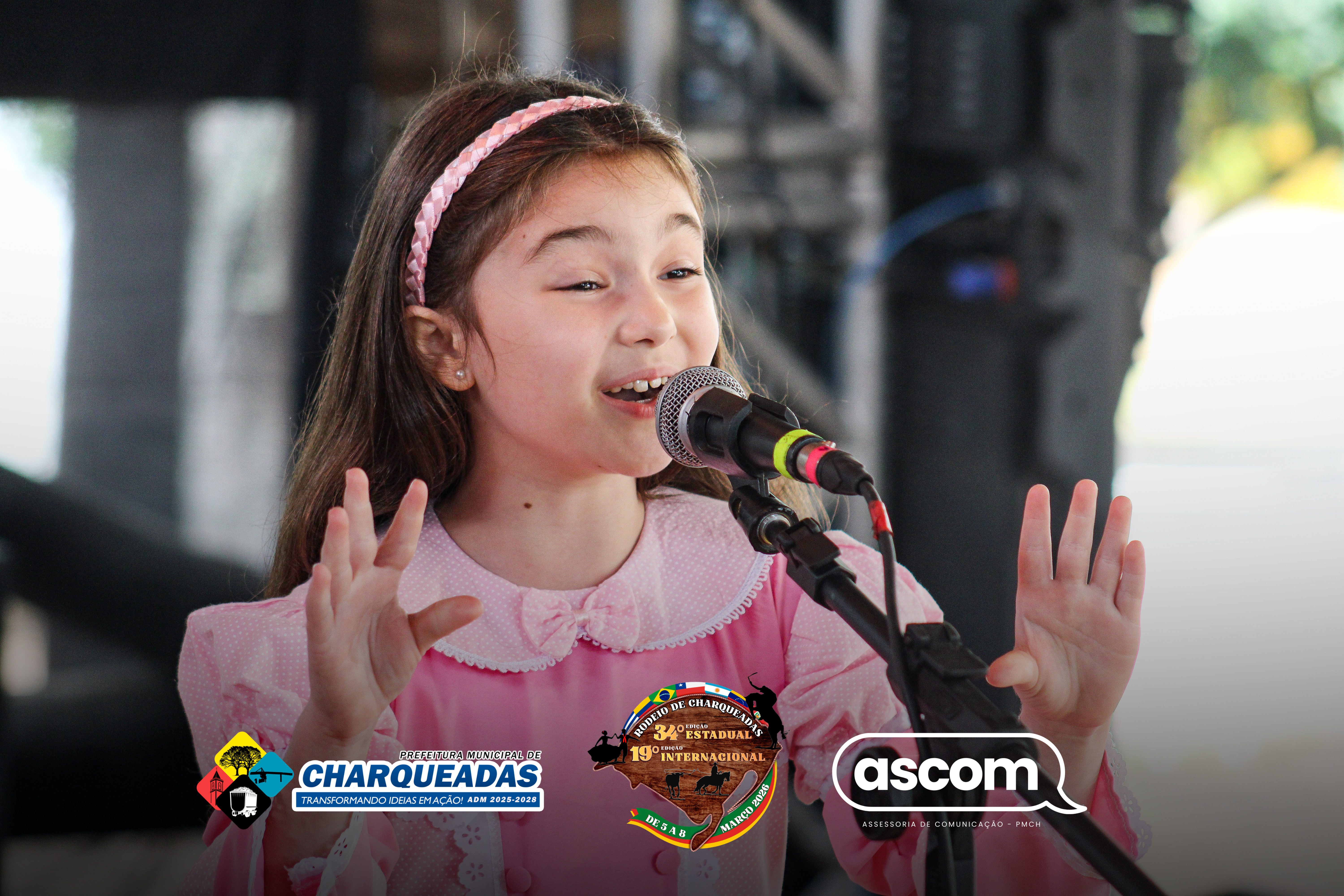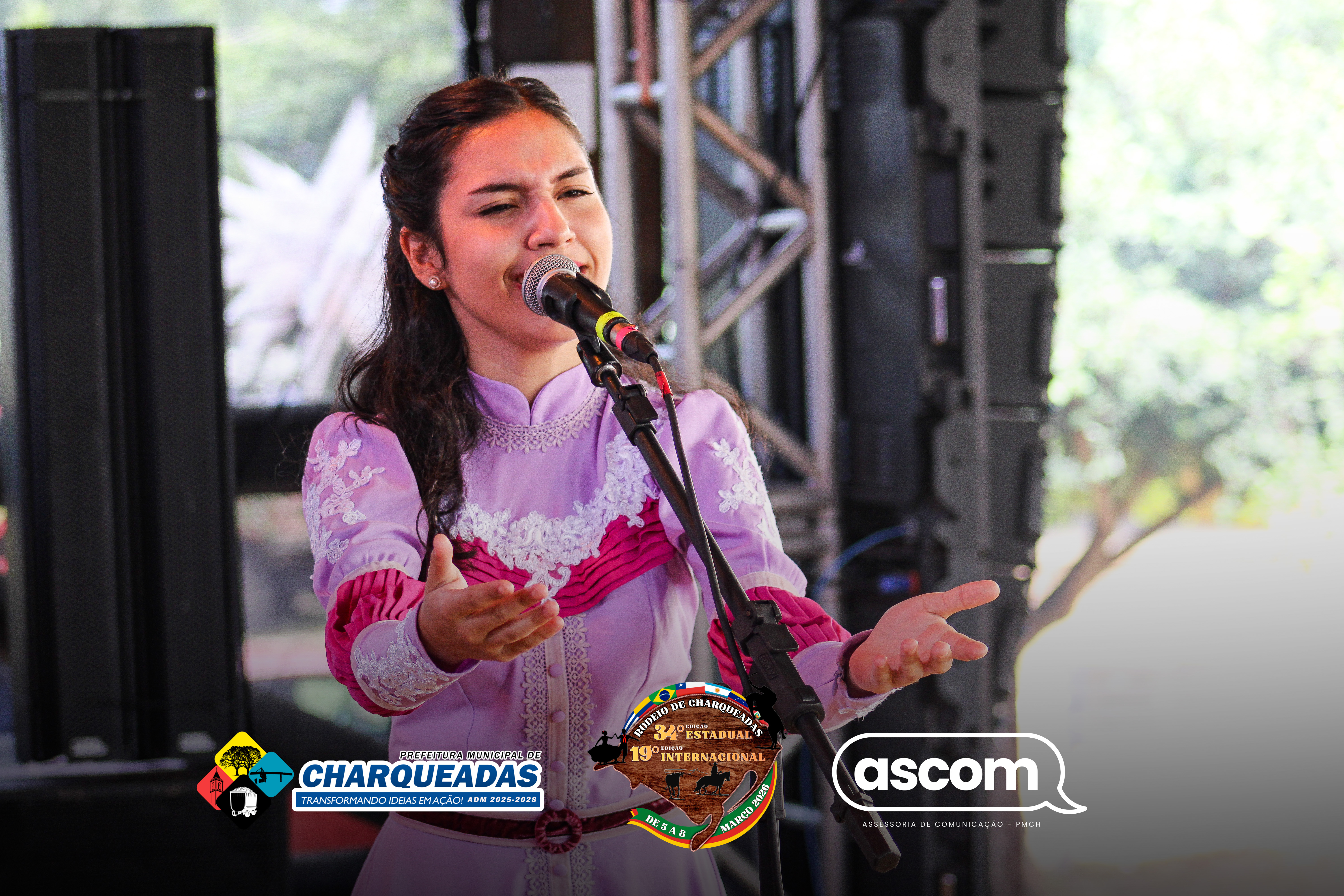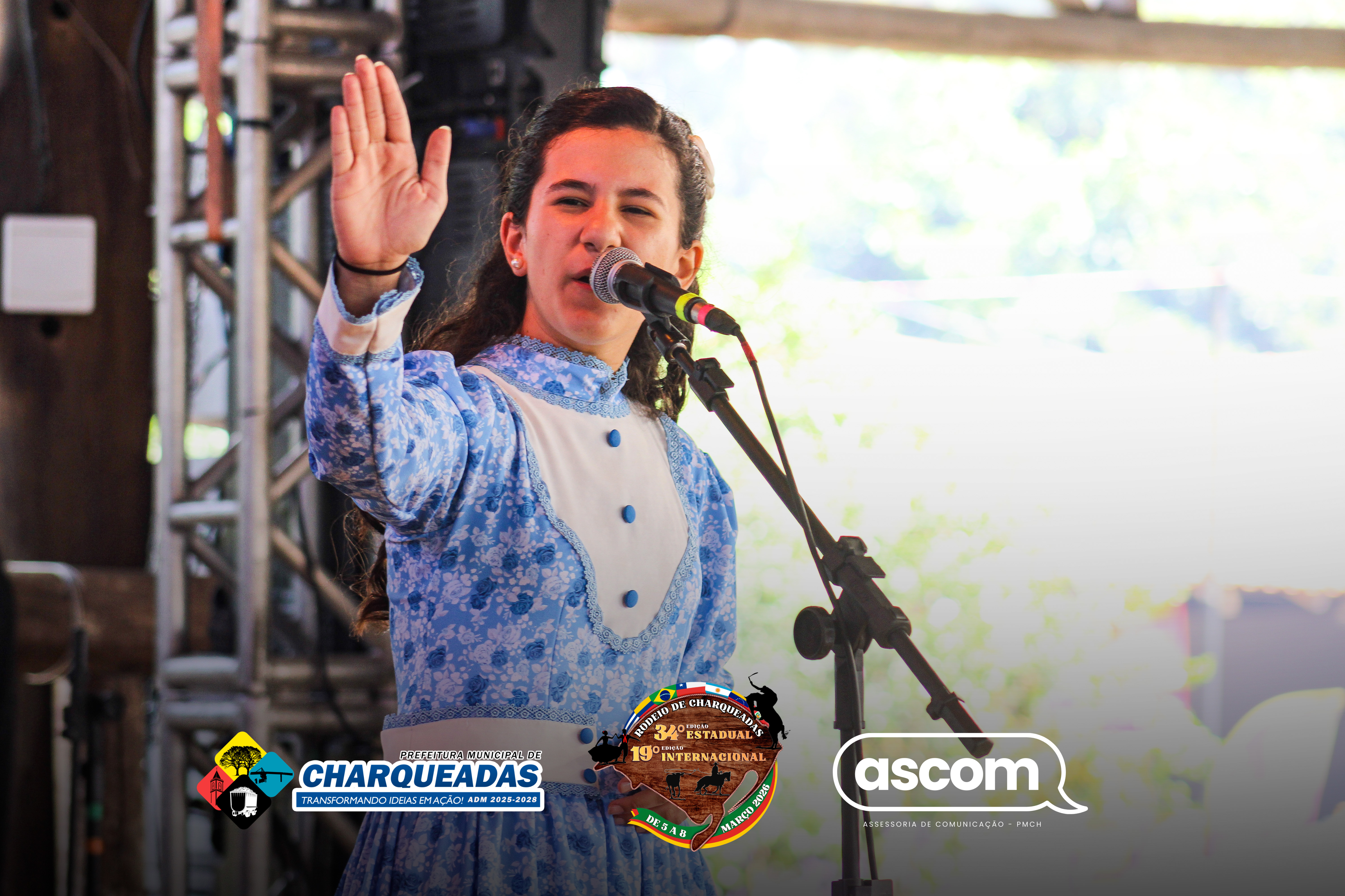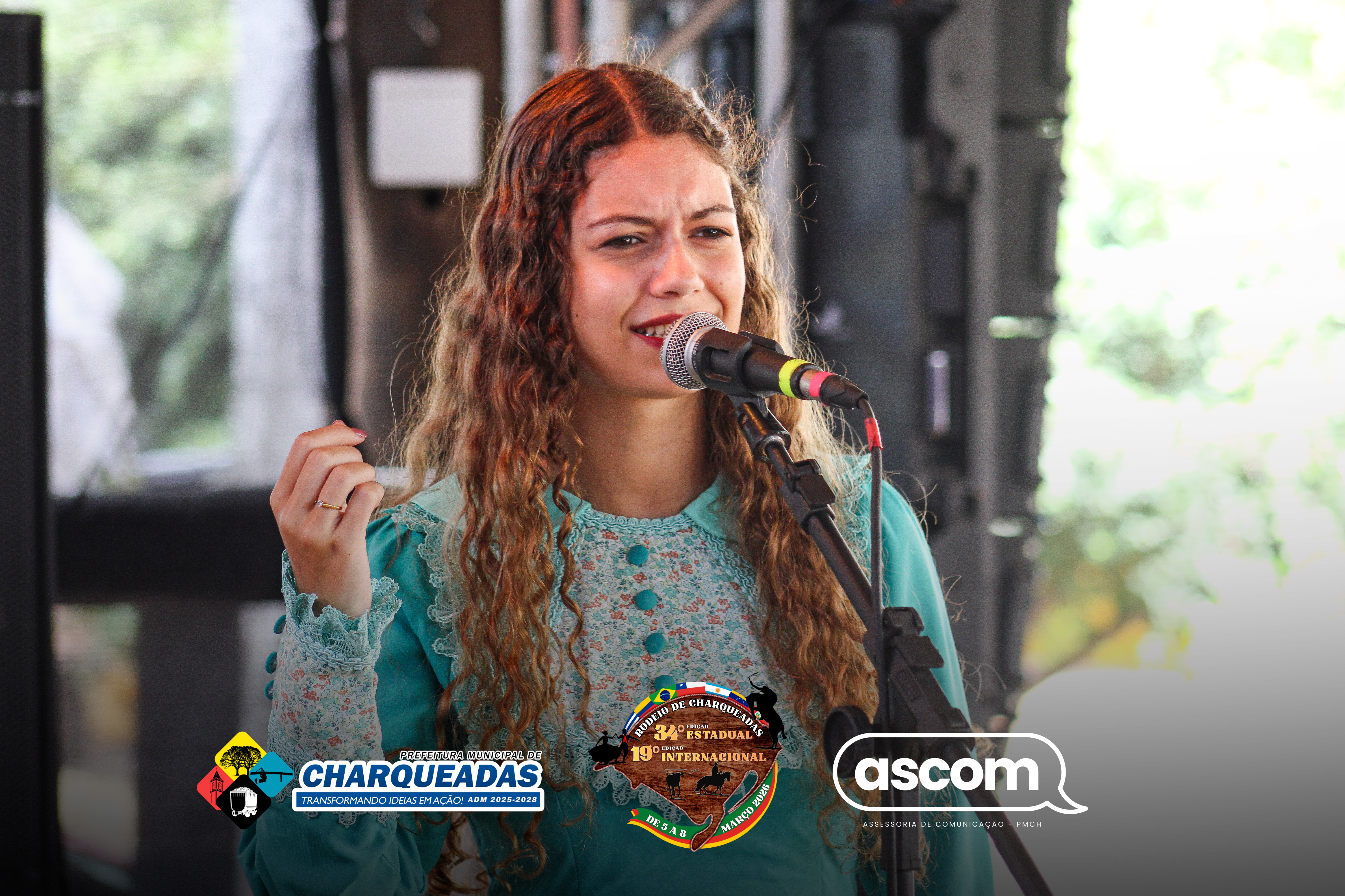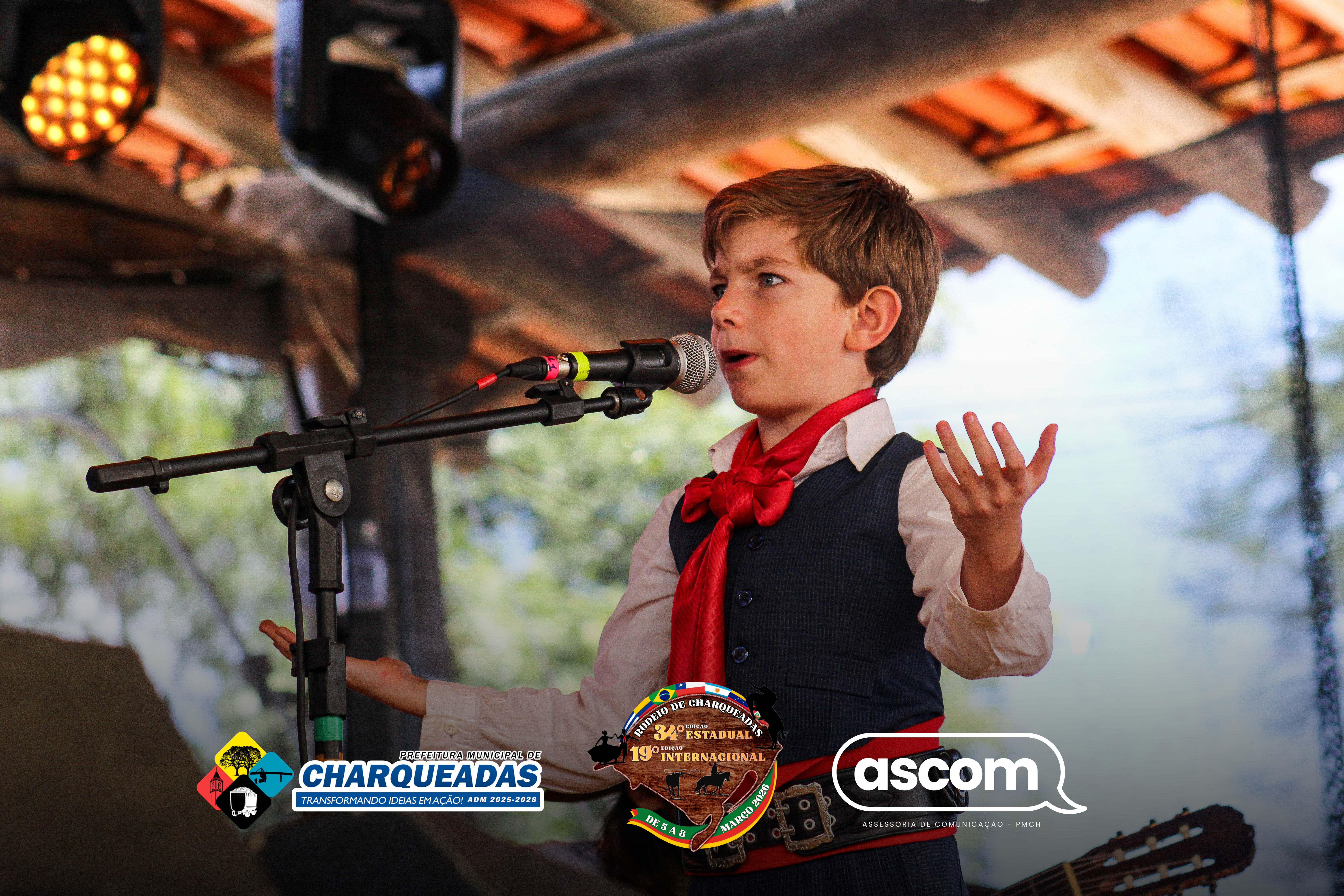 Na tarde deste domingo (08/03), o Parque Municipal de Eventos Aldo Moreira dos Santos foi tomado pelo talento e pela tradição no Concurso de Declamação. Os competidores demonstraram toda sua habilidade e paixão pela música gaúcha, encantando o público presente.