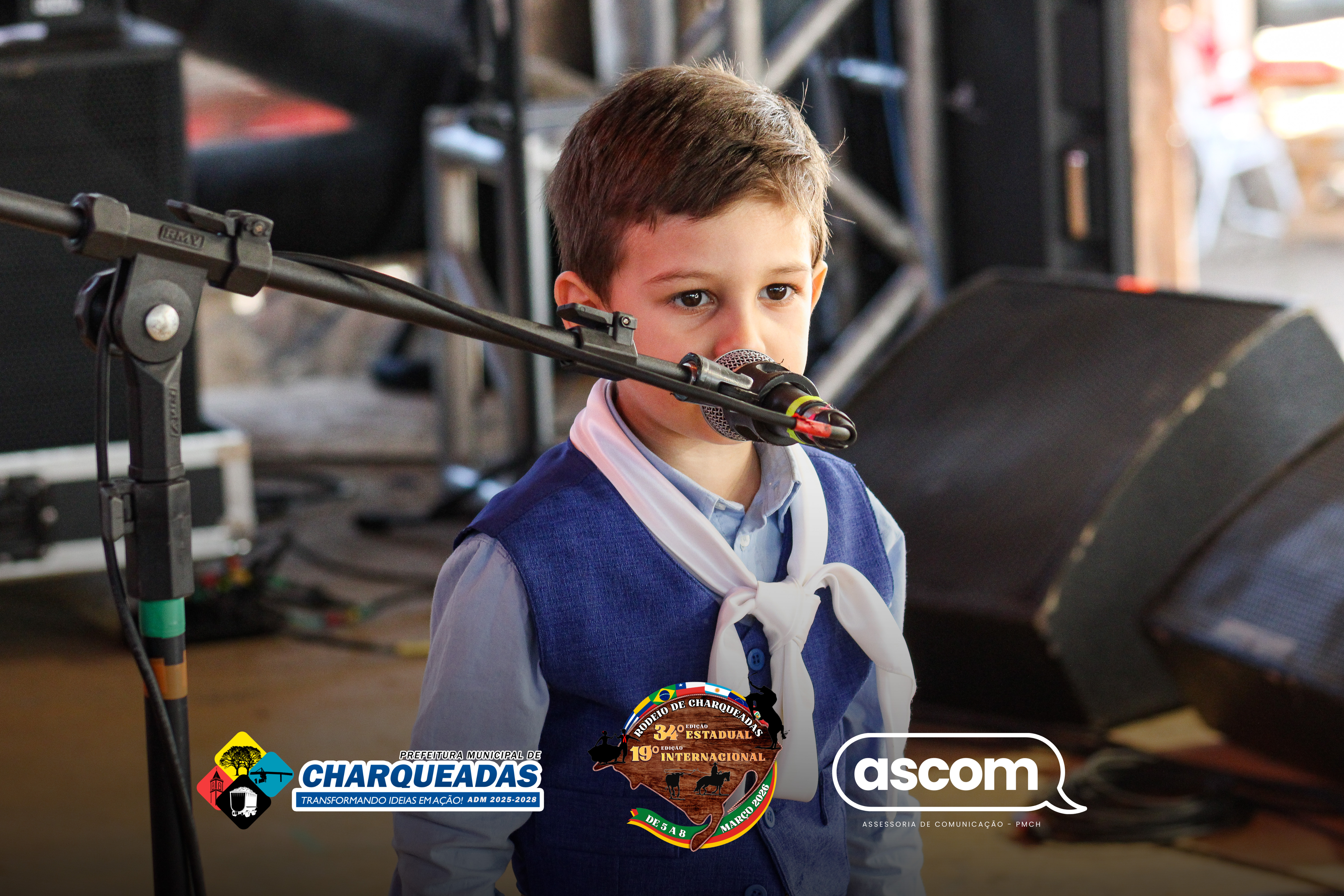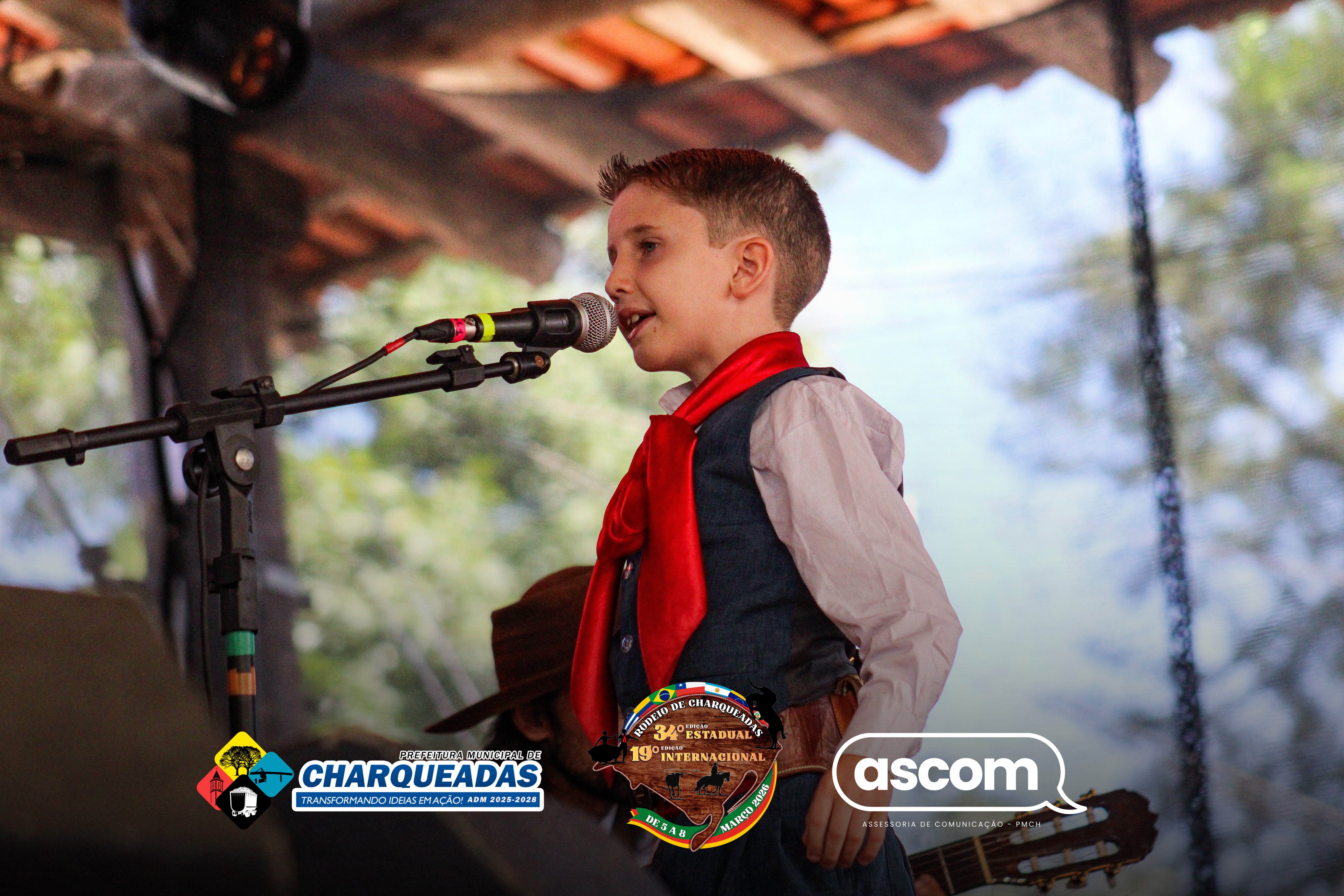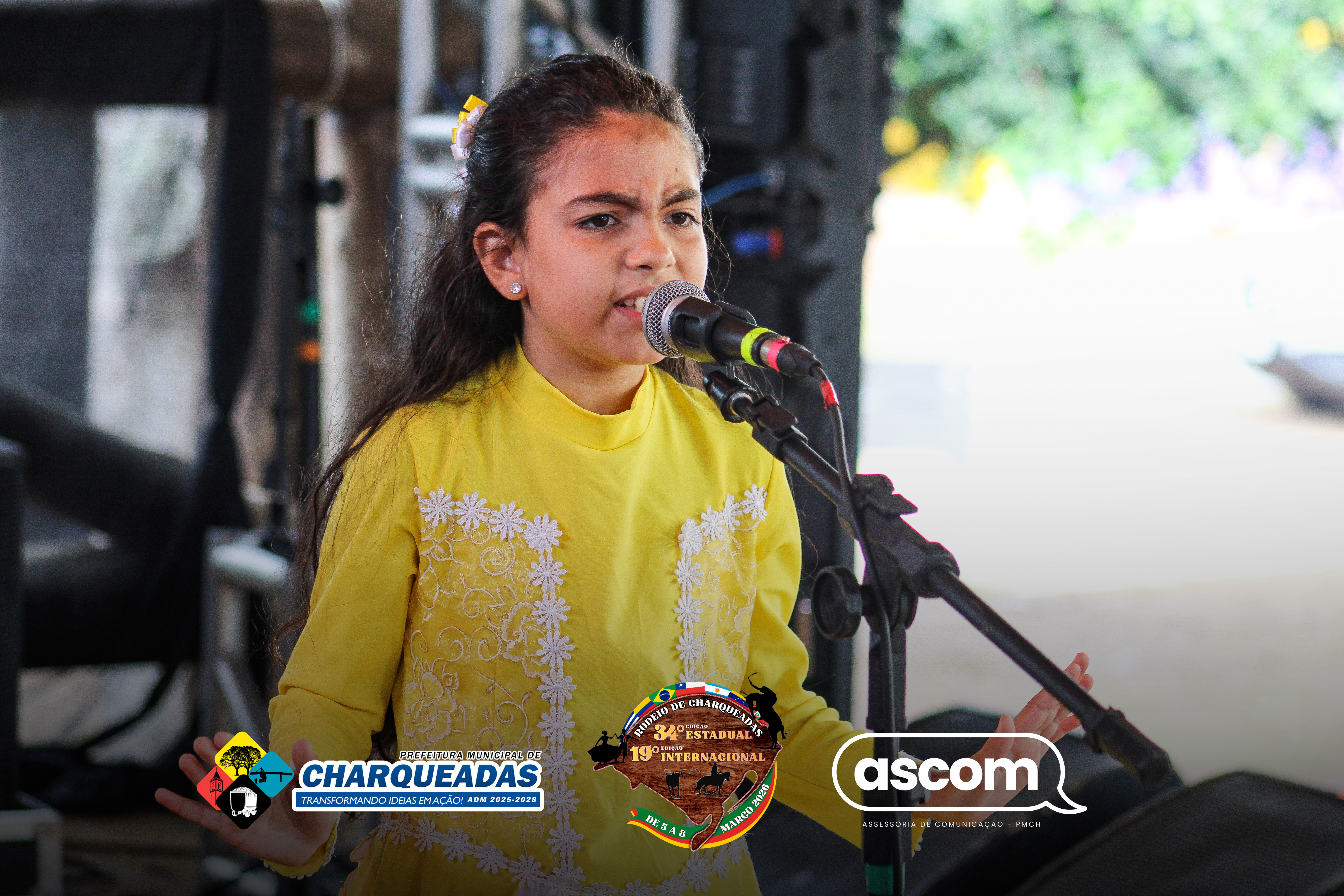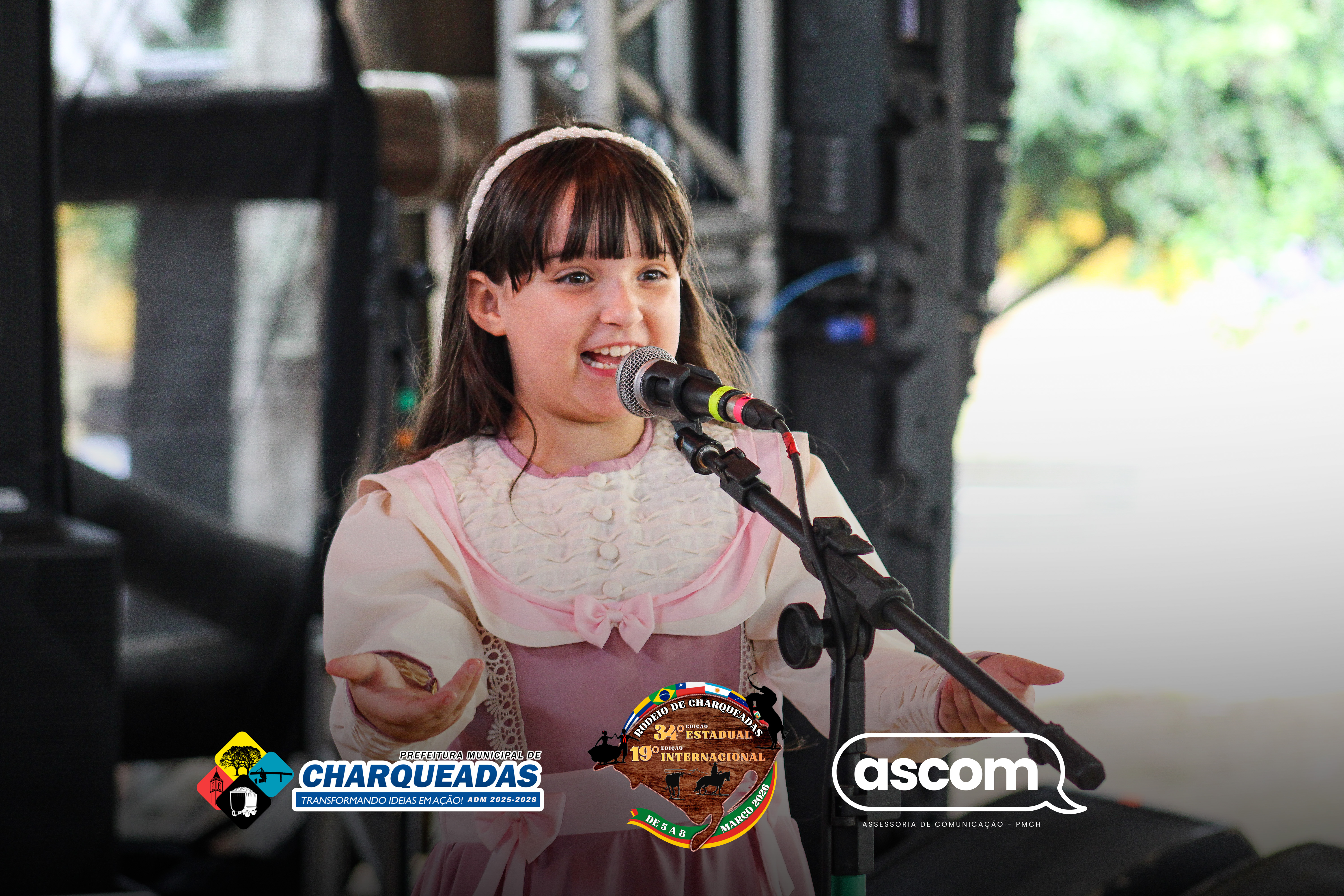Na tarde deste domingo (08/03), o Parque Municipal de Eventos Aldo Moreira dos Santos foi tomado pelo talento e pela tradição no Concurso de Declamação. Os competidores demonstraram toda sua habilidade e paixão pela música gaúcha, encantando o público presente.