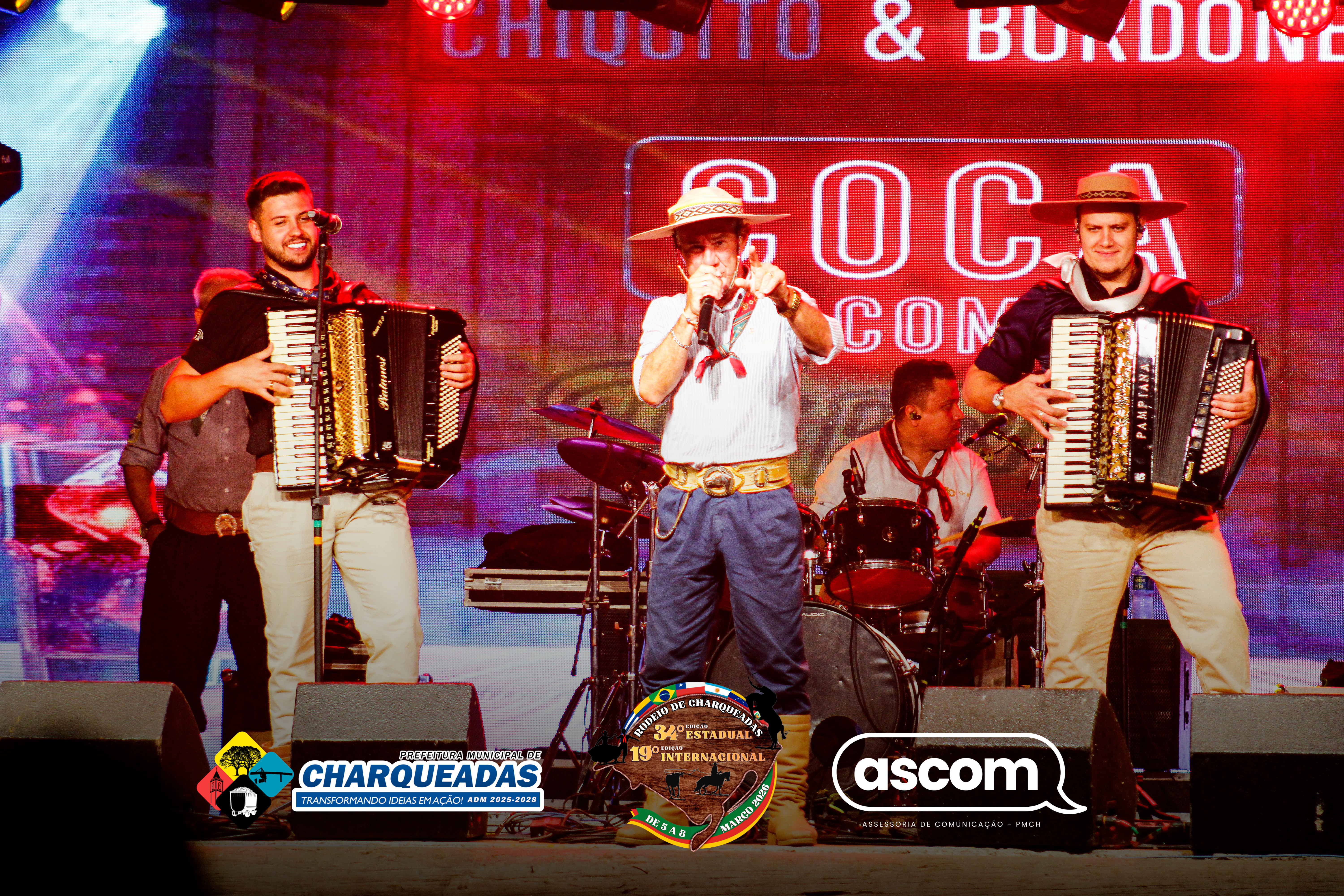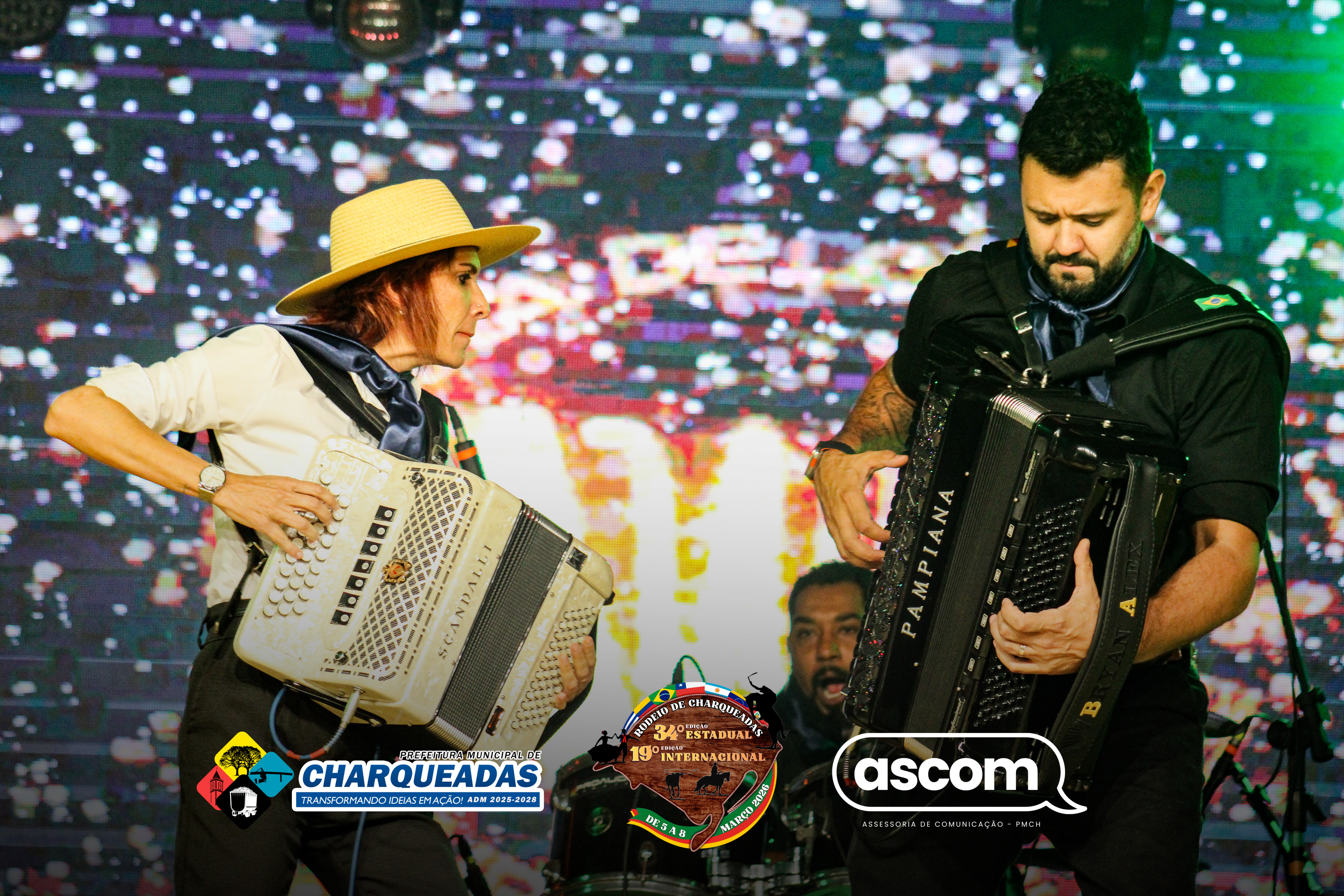 A programação artística do 34º Rodeio Estadual e 19º Rodeio Internacional de Charqueadas chegou ao fim. Este domingo (08/03) foram realizadas as apresentações de Adriana de Los Santos, Chiquito e Bordoneio e Tchê Guri, que levaram ao público um repertório animado e repleto de sucessos.